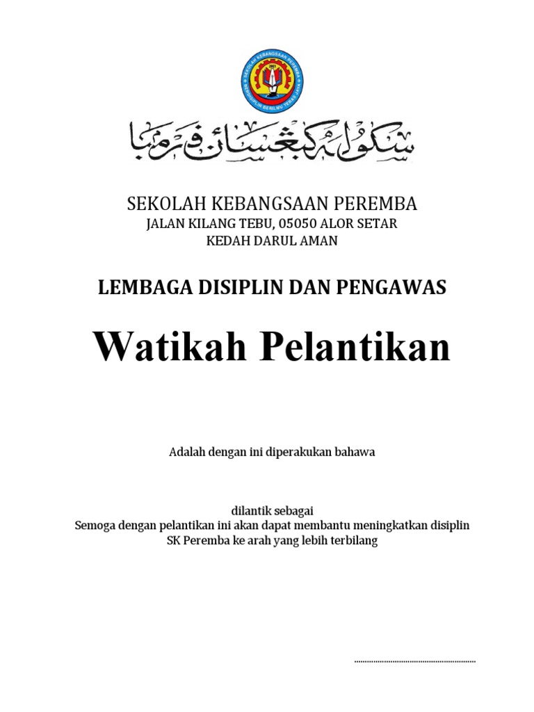 Pusat Sumber Sk Hijrah Badong Daro Contoh Sijil Watikah Perlantikan Pengawas Pss