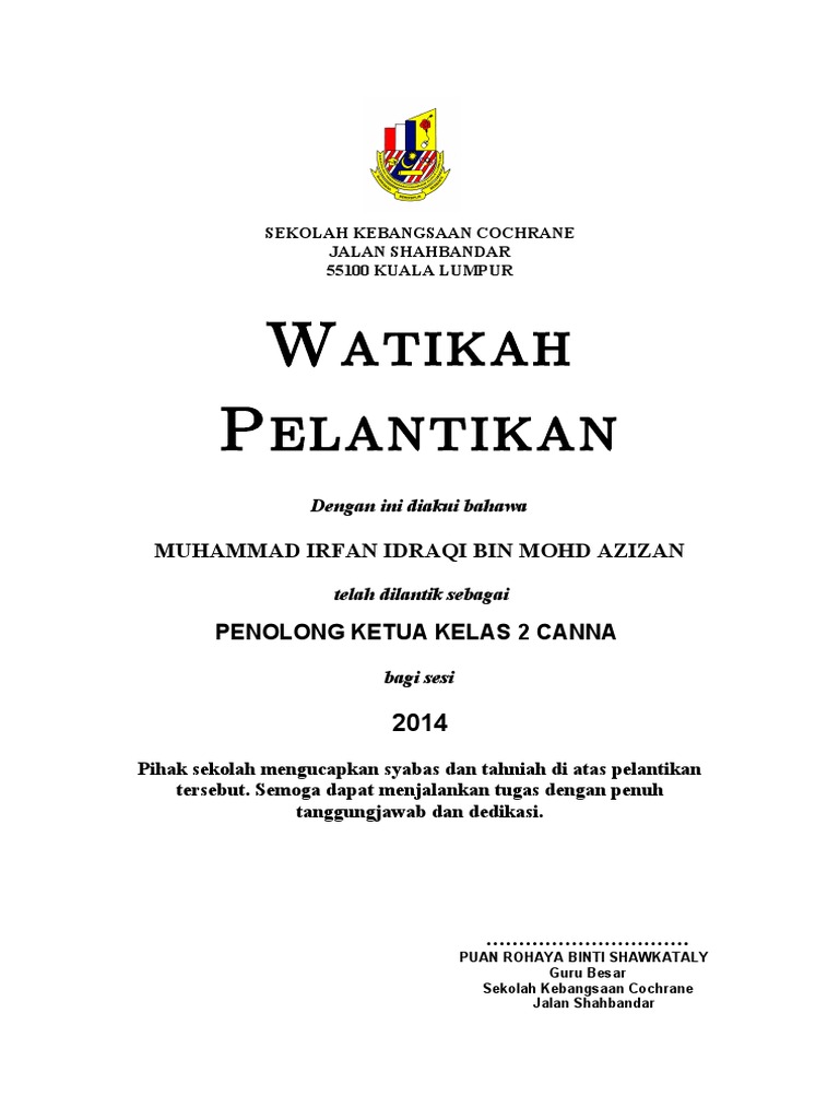 Format Sijil Watikah Lantikan Pengawas