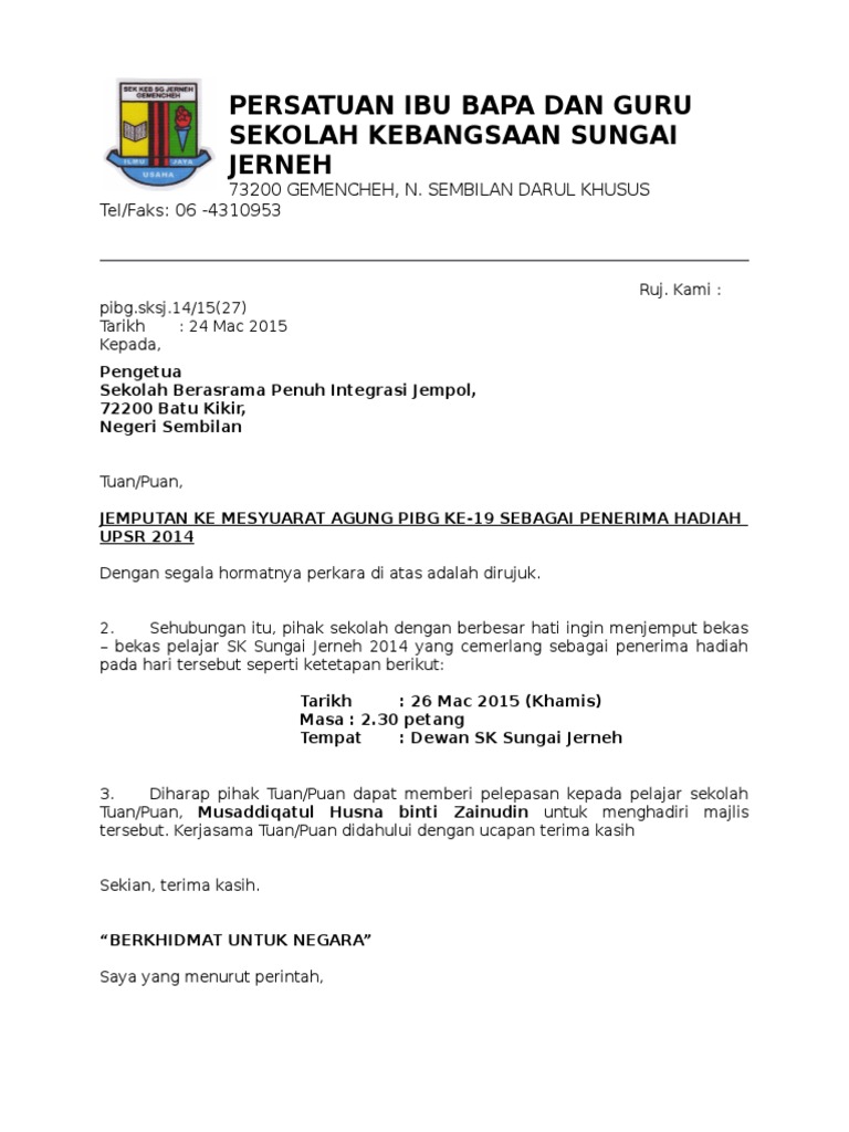 Contoh Surat Rasmi Jemputan Ke Program Surasmi G