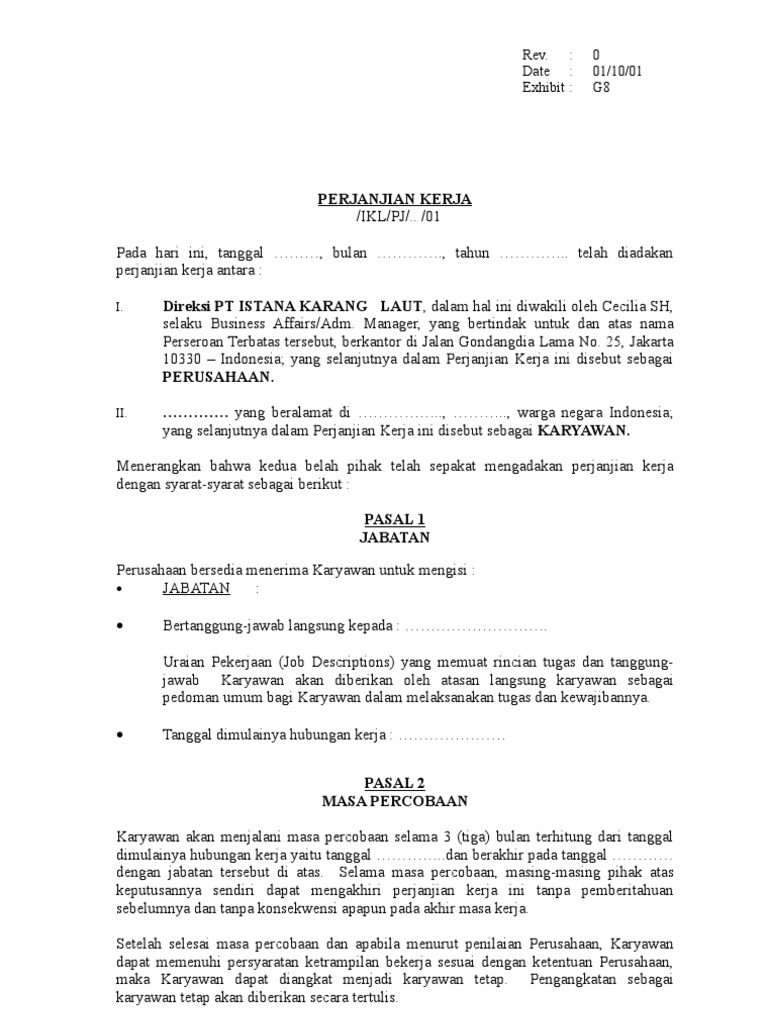 Doc Contoh Surat Perjanjian Kerja Kontrak Kerja Karyawan Perusahaan Surat Blog Desain Banner