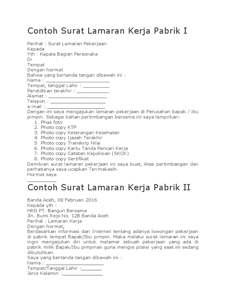 7 Contoh Surat Lamaran Kerja Pabrik Paling Lengkap Contoh Surat