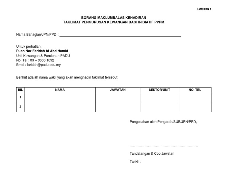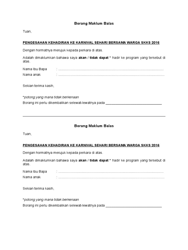 Contoh Borang Maklum Balas Kehadiran