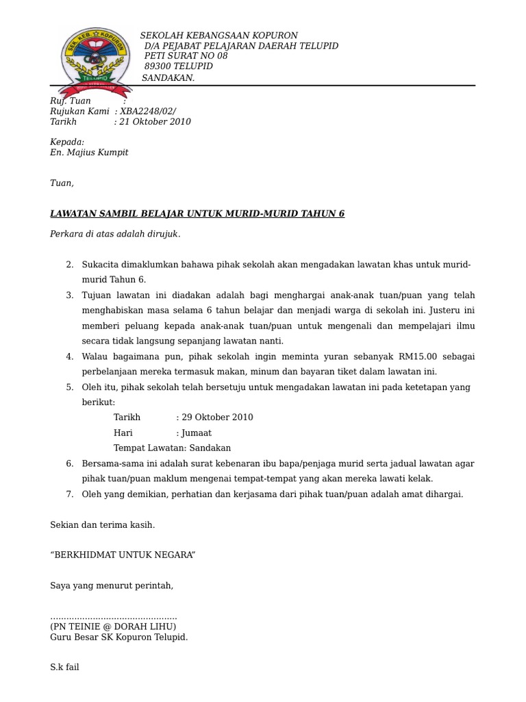 Contoh surat makluman kepada ibu bapa penjaga. 10 jalan daim 2 1 kota damansara 47900 damansara. Contoh surat mohon tajaan sumbangan sukan sekolah. Contoh surat rasmi tidak hadir bimbang penularan covid 19.