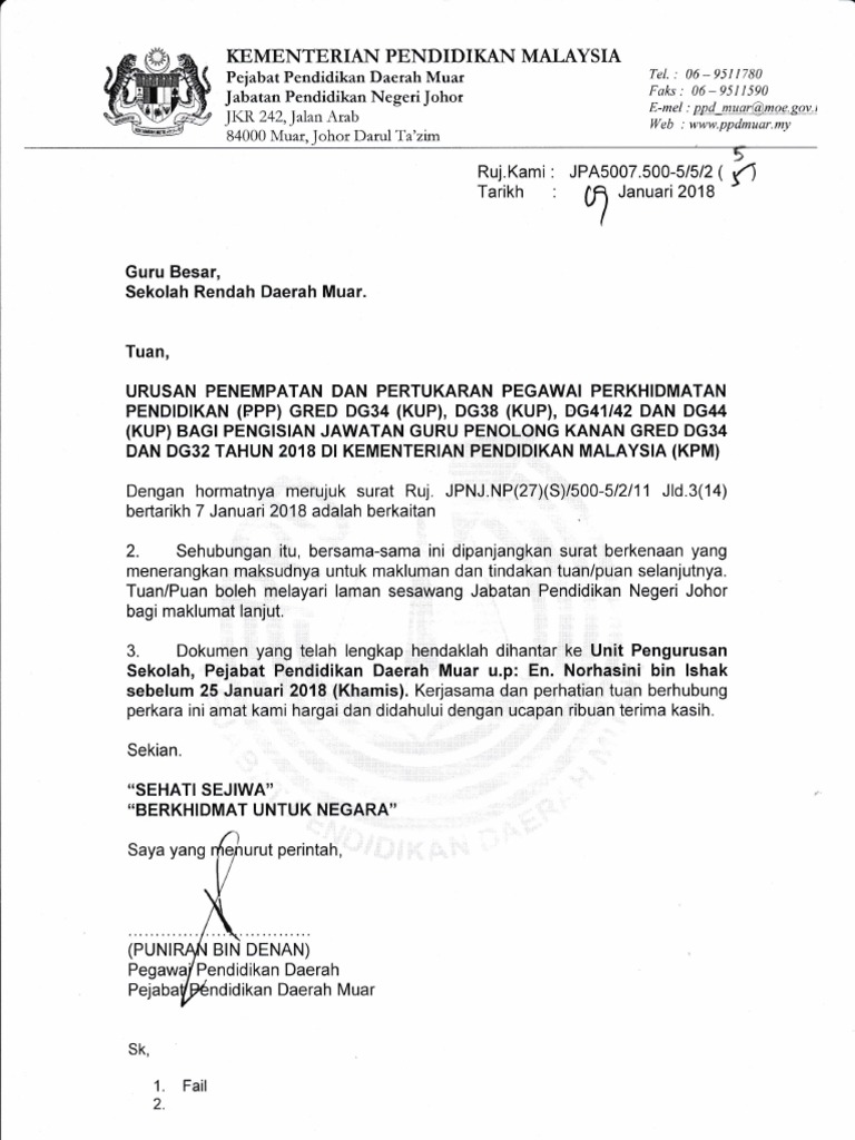Surat Lantikan Gpk Pentadbiran Sekolah