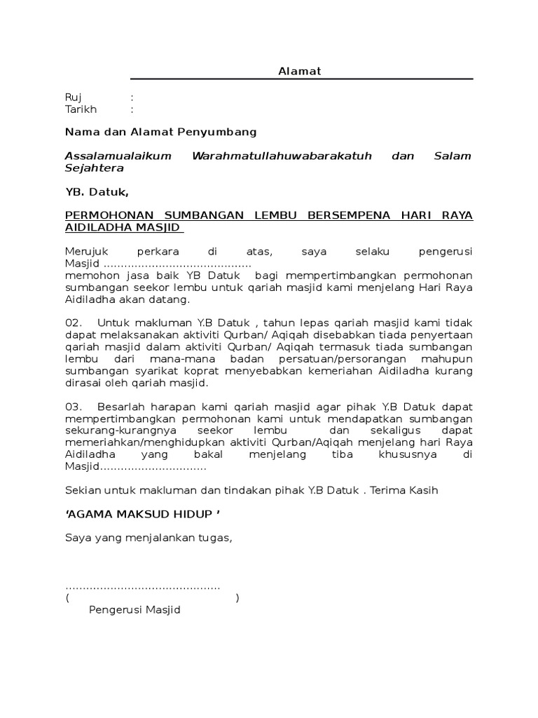 Contoh Surat Permohonan Sumbangan Lembu Docx
