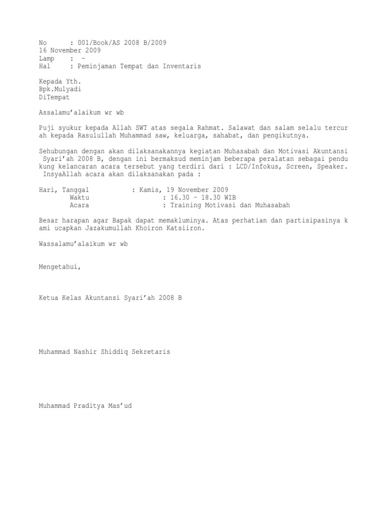 Doc Contoh Surat Permohonan Peminjaman Barang Nurul Putri Academia Edu