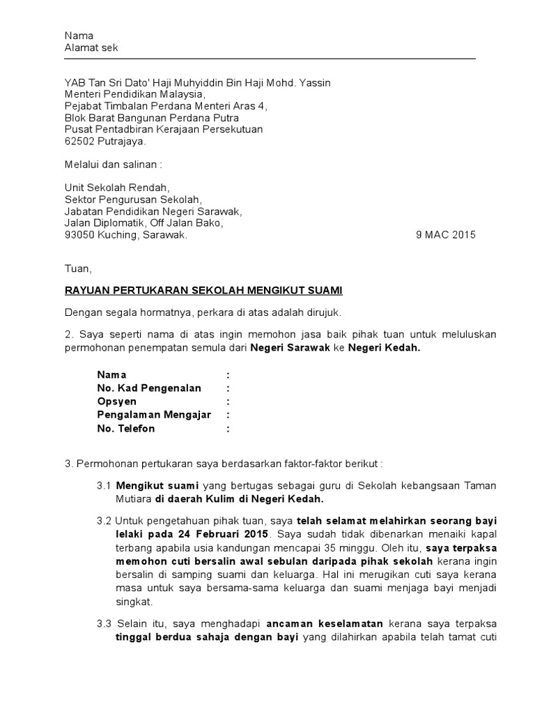 Contoh Surat Rayuan Pertukaran Penempatan Sekolah Viral Blog O