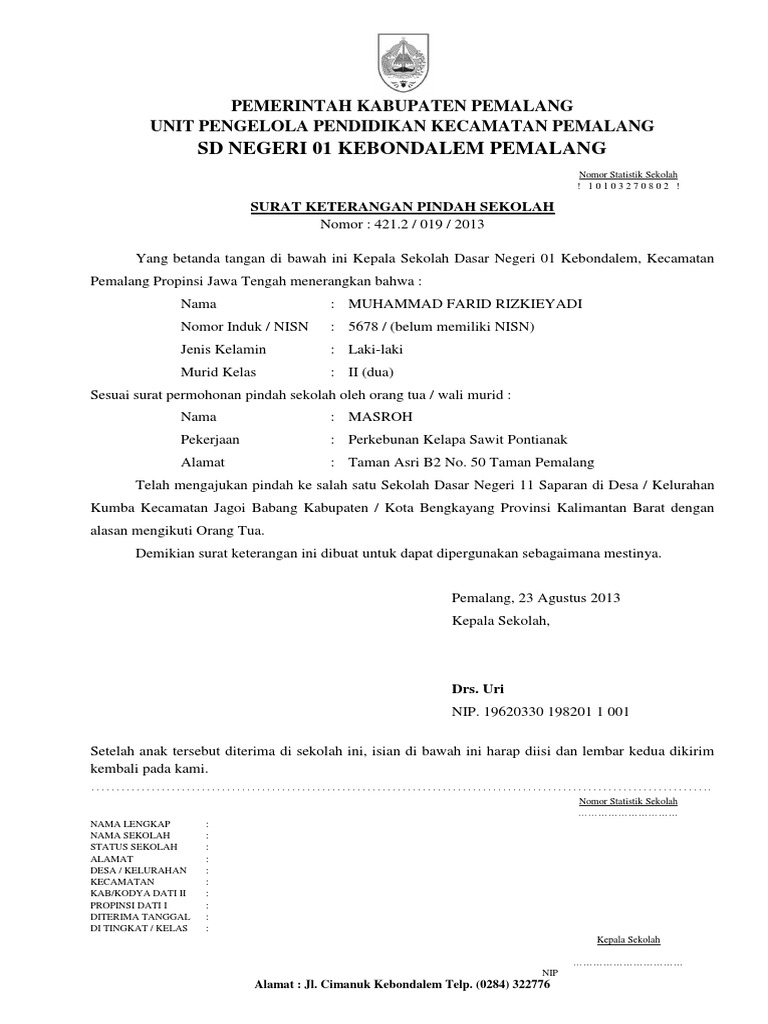 Surat Keterangan Pindah Sekolah Pdf