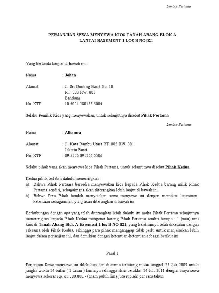 Contoh Surat Perjanjian Sewa Ruko Kios Pdf Doc Lamudi