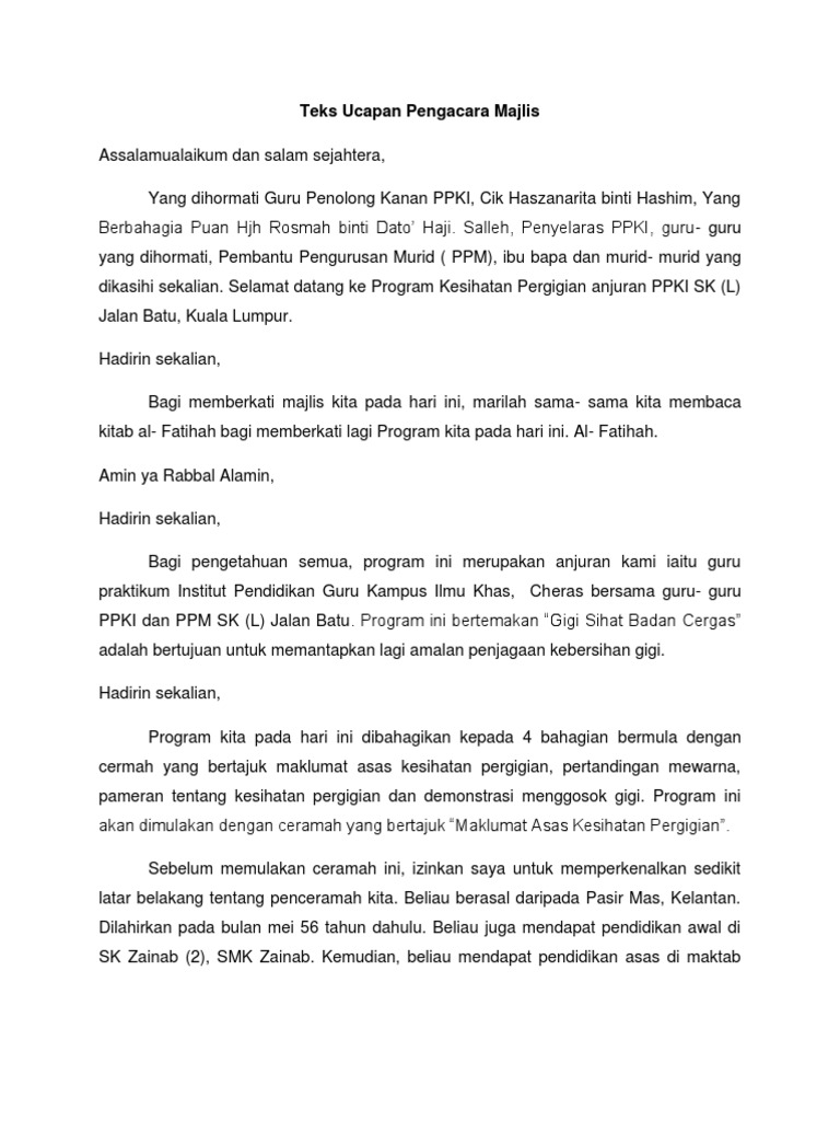 Contoh Teks Ucapan Pengacara Majlis Docx