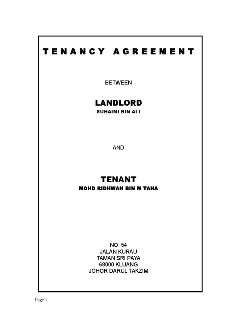 Contoh Tenancy Agreement Malaysia Arif Hussin