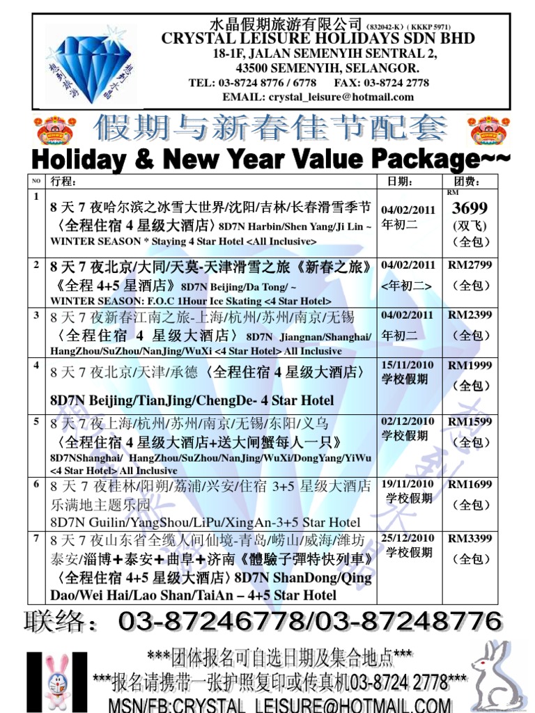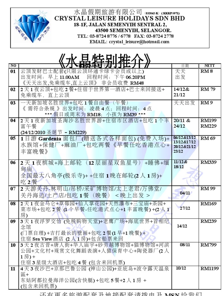 Crystal Leisure Holidays Sdn Bhd 18 1f Jalan Semenyih Sentral 2 43500 Semenyih Selangor