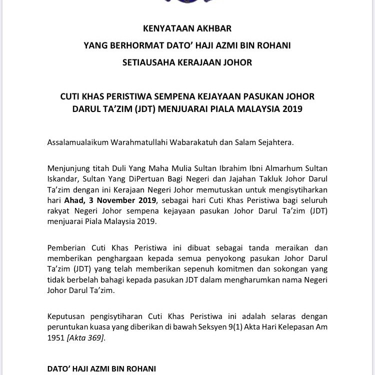 Senarai Cuti Umum Johor Tahun 2019 Info Inspirasi Resepi