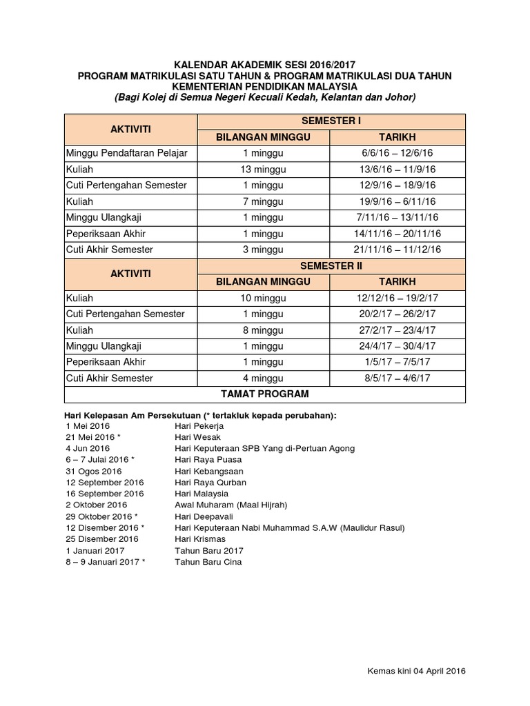 Kalendar Cuti Umum Dan Cuti Sekolah 2017