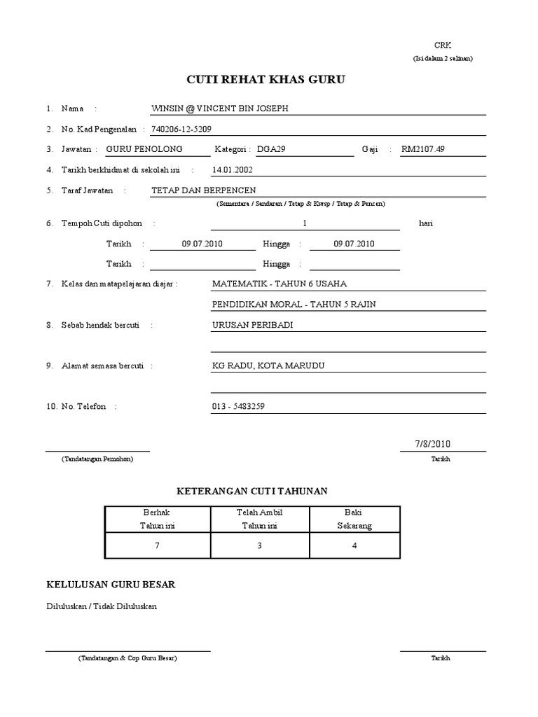 Pekeliling Cuti Rehat Khas Crk Sumber Pendidikan