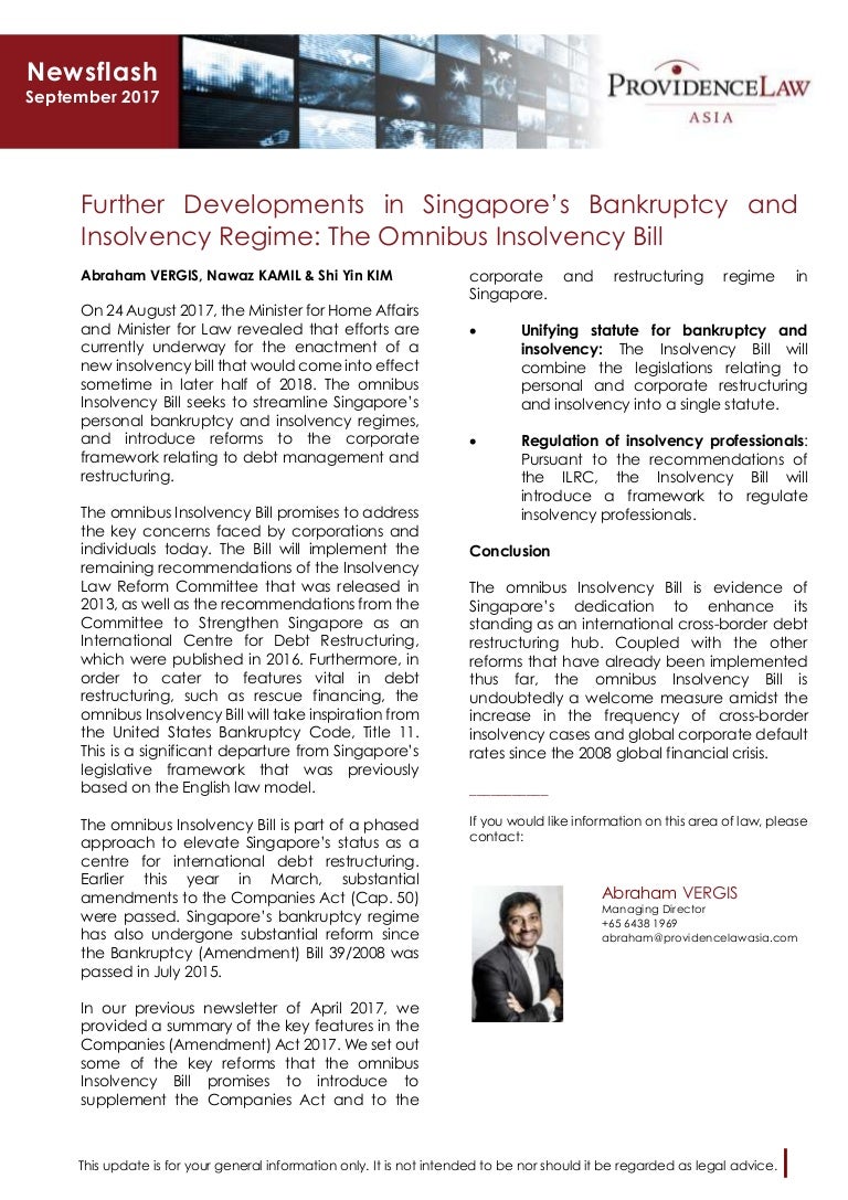 Further Developments In Singapore S Bankruptcy And Insolvency Regime
