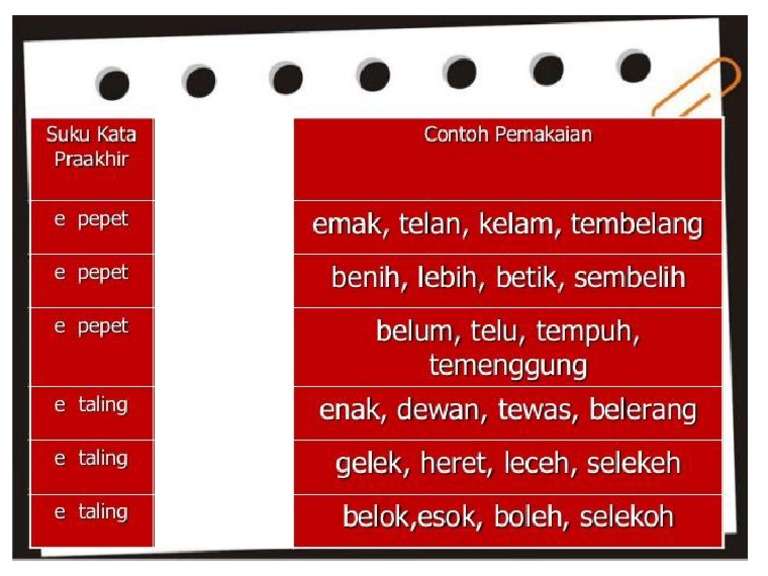 Bacaan E Pepet E Taling O