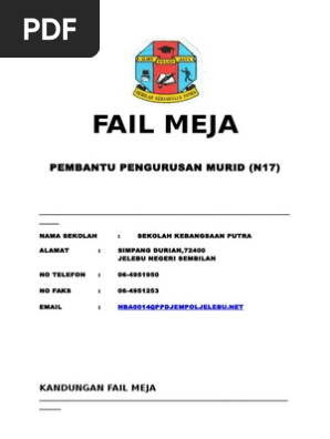 Fail Meja Jawatan Pembantupengurusanmurid Unit Prasekolah Bahagian