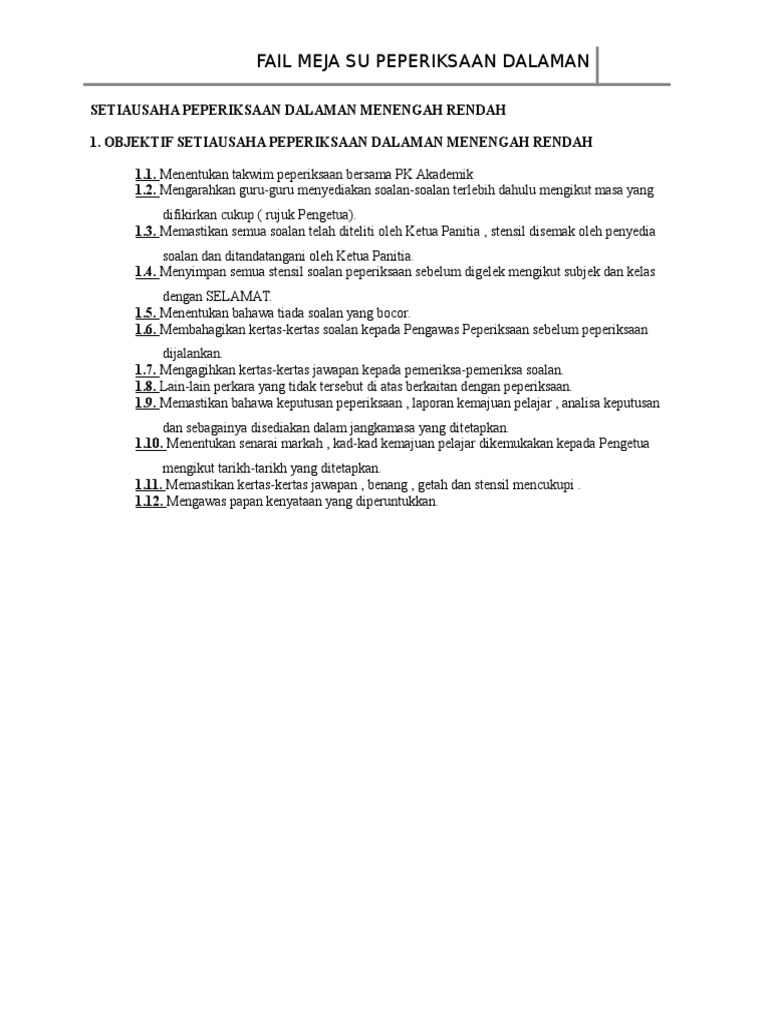 Checklist Fail Peperiksaan Dalaman