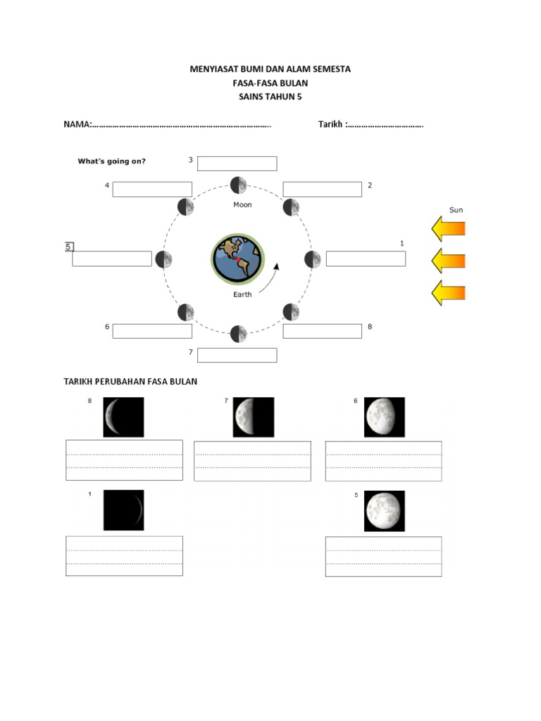 Sains Tahun 5 Sk Lintang 2010 2019 Fasa Fasa Bulan Moon Phase Lembaran Kerja