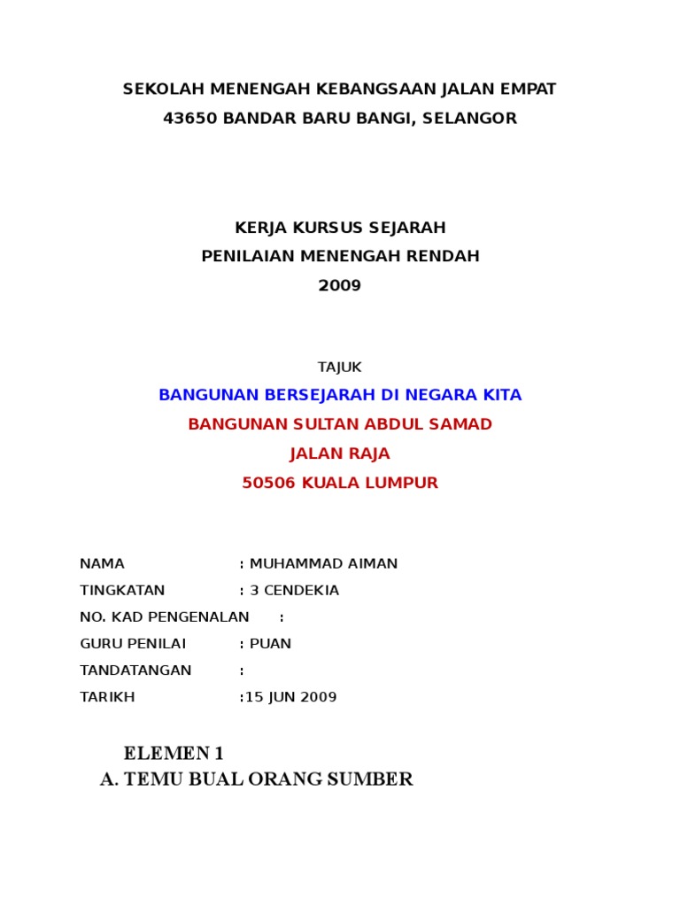 Contoh Kerja Kursus Sejarah Pt3 Bangunan Bersejarah Idea Terkini