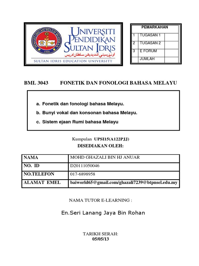 Doc Bml3043 Fonetik Fonologi Shannonko Moi Academia Edu