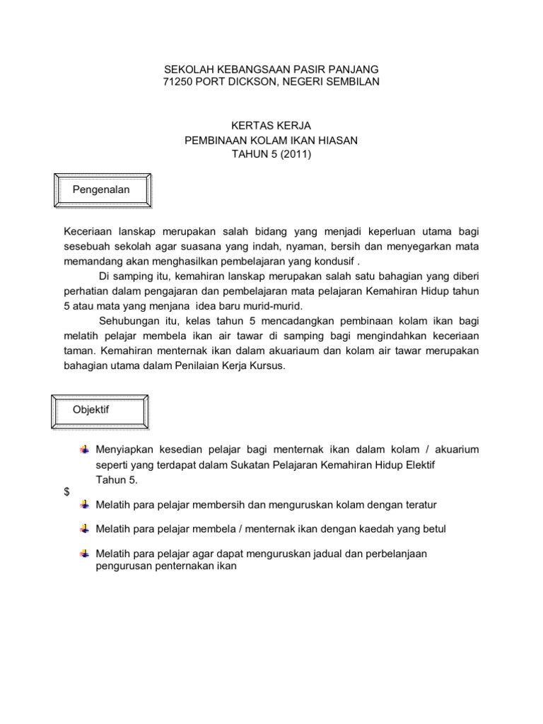 Kertas Kerja Projek Kolam Ikan